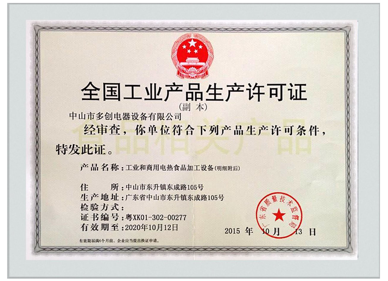 產(chǎn)品通過了生產(chǎn)許可XK21-007-01715 粵XK01-302-00608認(rèn)證,并獲得多項(xiàng)國家認(rèn)可證書。
